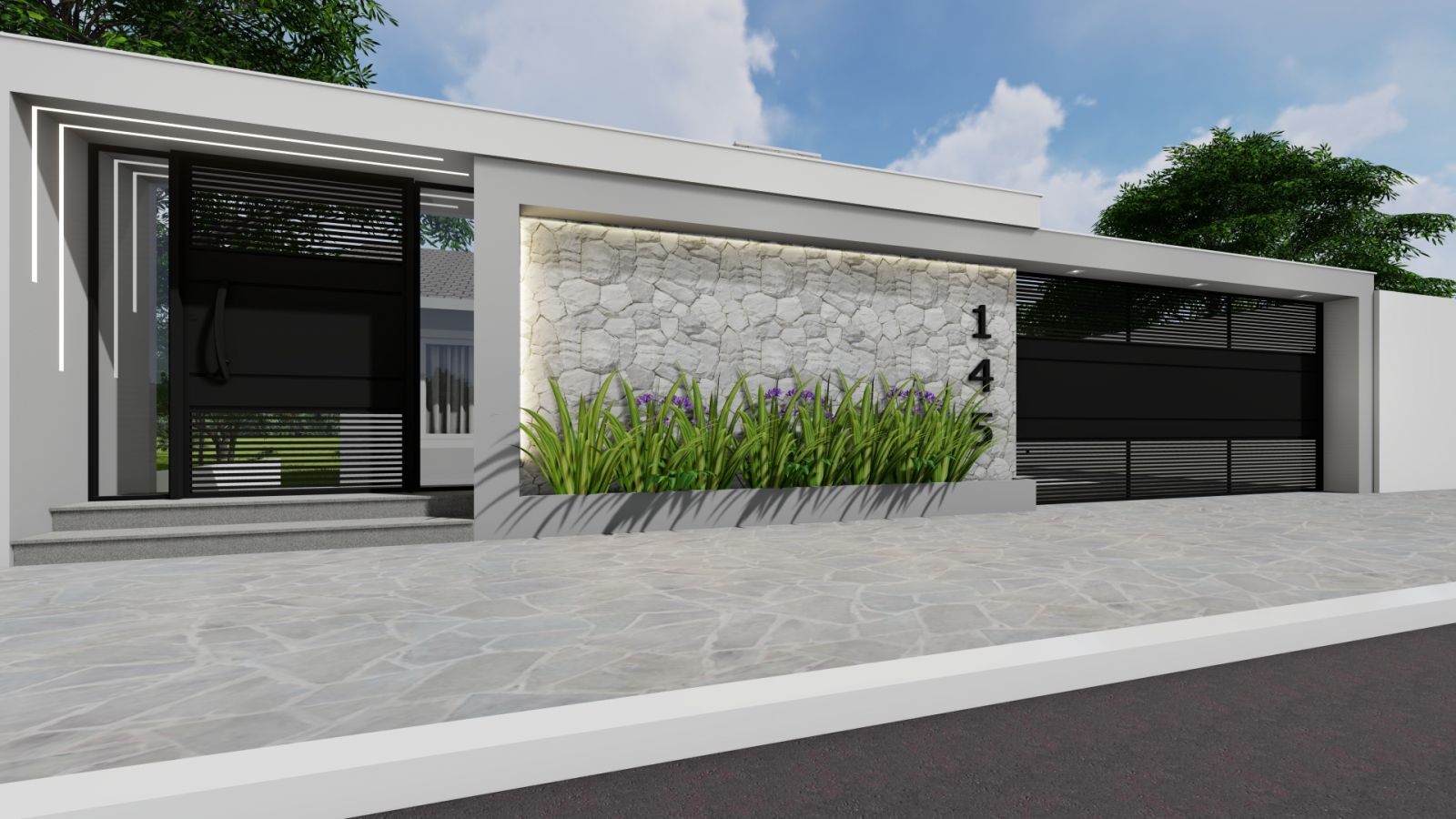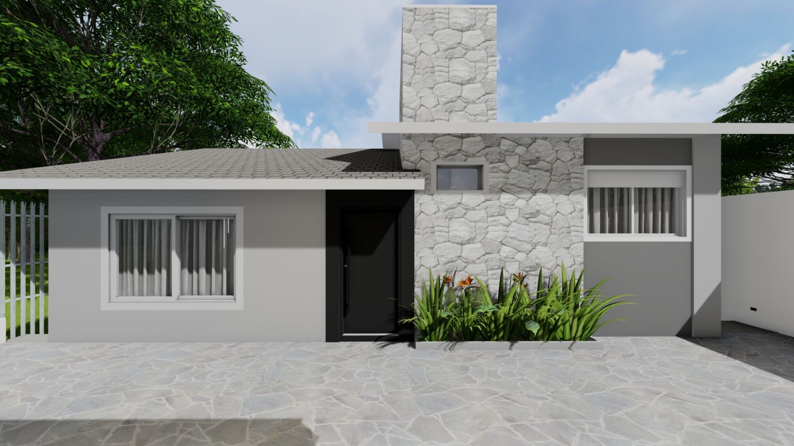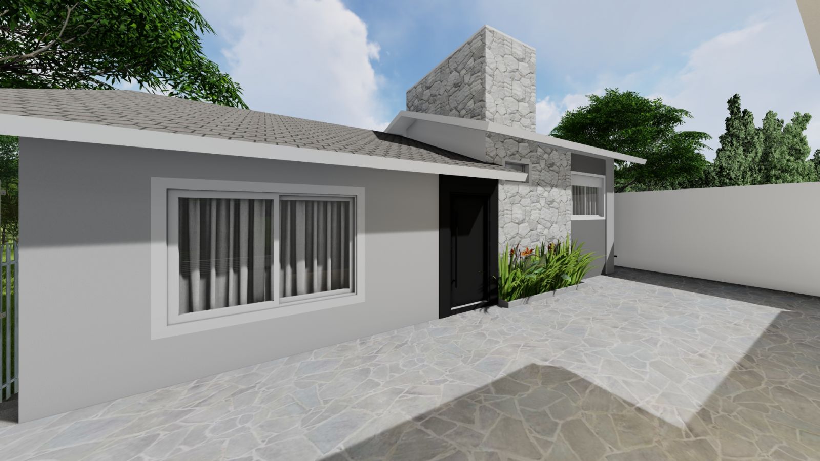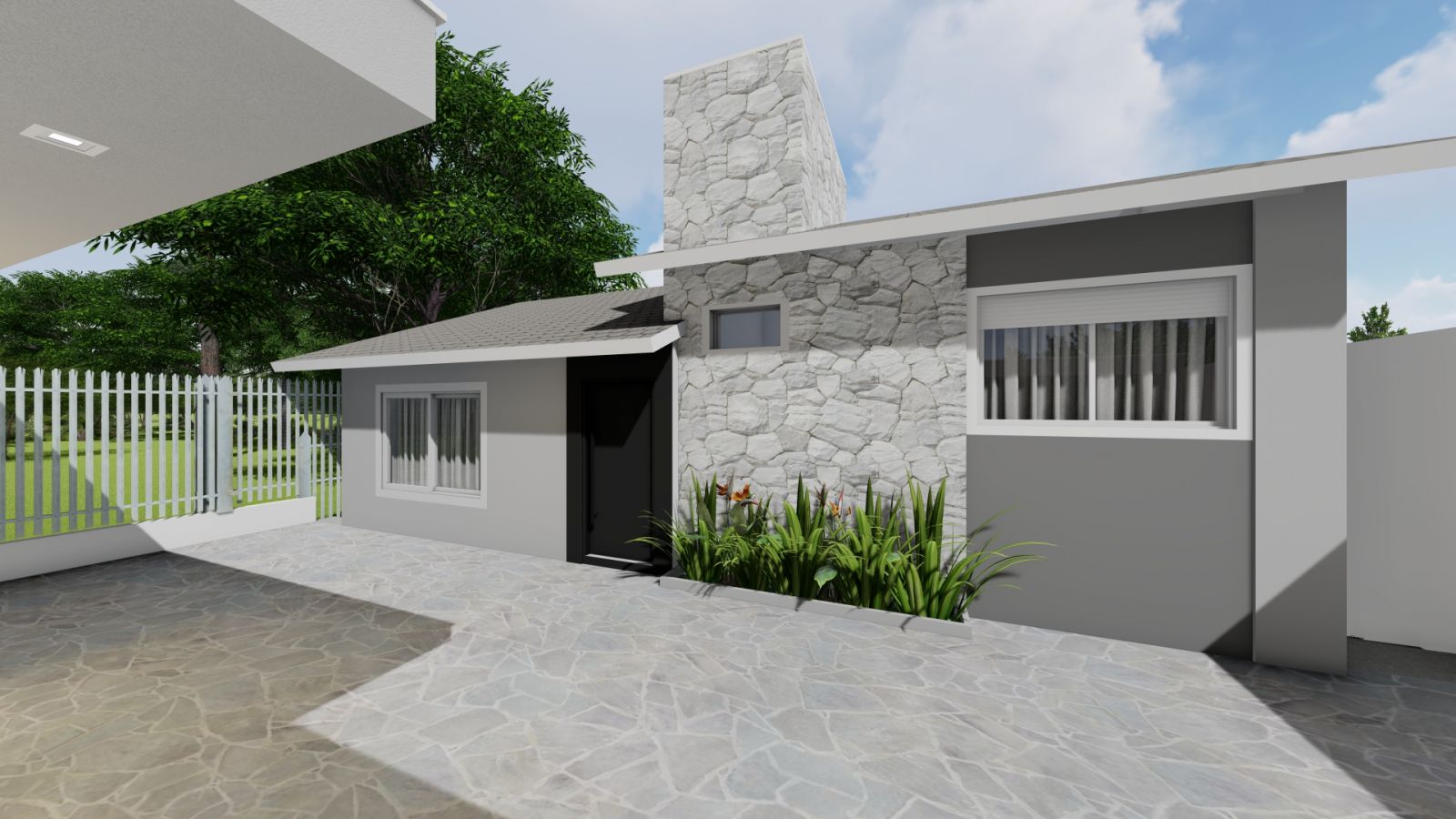 Com uma super reforma, projetamos os pórticos de entrada de pedestres e veículos inexistentes, além da substituição das esquadrias por novas, revestimentos e pintura.